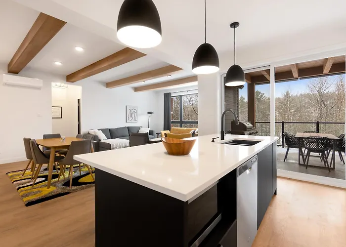 האורחים יכולים לבחור שהייה בדירה Magnifique Condo Pour 4 A Orford בעת ביקור במגוג. אורחים יכולים ליהנות ממרפסת.